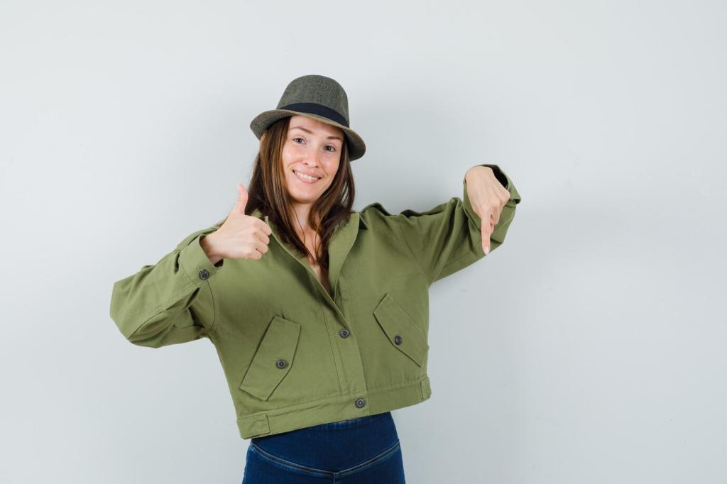 Sortiere nach Liebling, reparieren, weitergeben. Notiere Lücken und plane bewusst. Wer weiß, was er besitzt, kauft gezielter und kombiniert kreativer. Teile deine Erkenntnisse in den Kommentaren und inspiriere andere.
